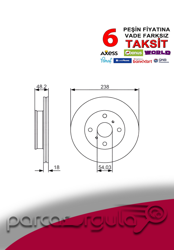 Bosch Fren Diski Ön 238MM Havalı Corolla 1,3 1993-1998 (0986479R75)