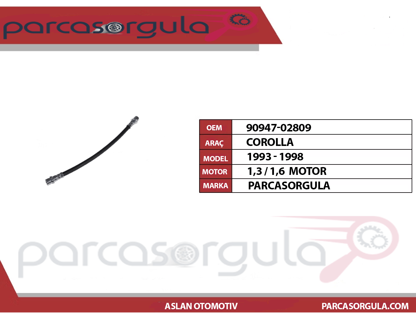 Fren Hortumu Arka Sağ / Sol Corolla 1993-1998 (90947-02809)